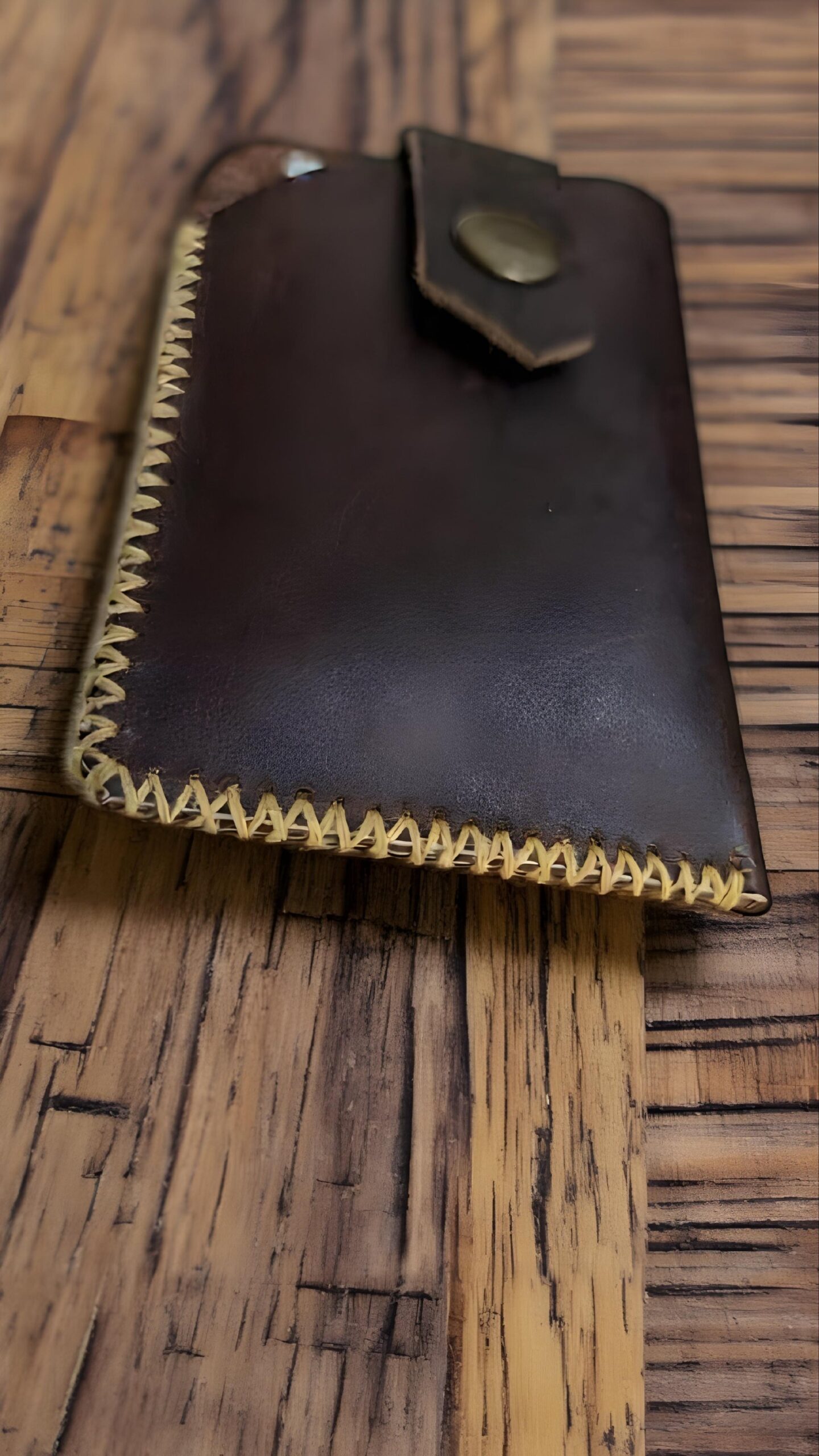 fulll-grain leather, this slim and elegant card holder is designed for those who appreciate timeless style and durability. Each piece is handmade, showcasing the natural grain and unique character of the leather, making every card holder truly one of a kind.